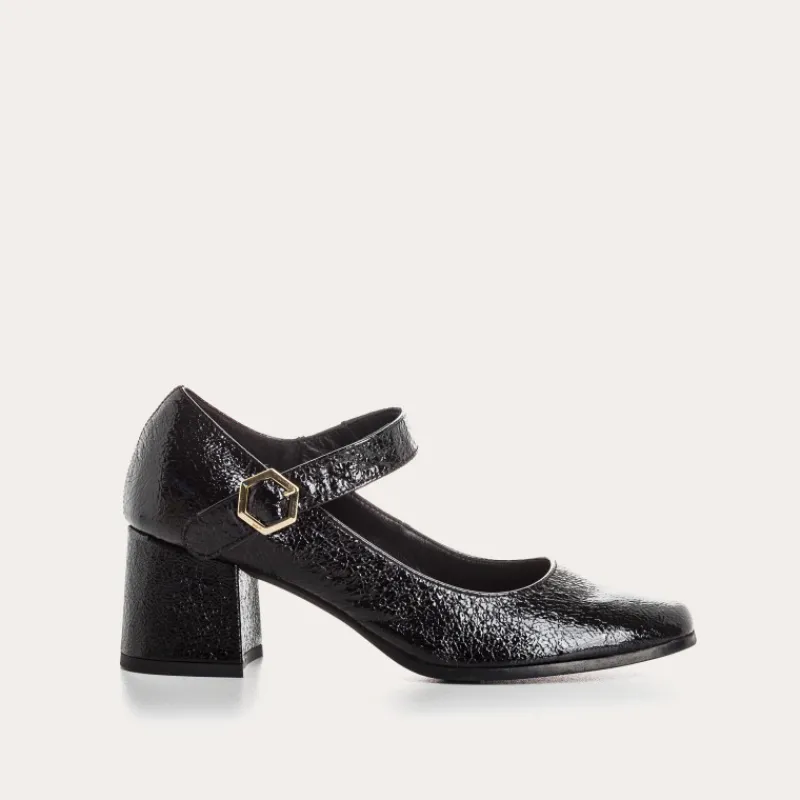 – Talon recouvert en cuir vernis grainé